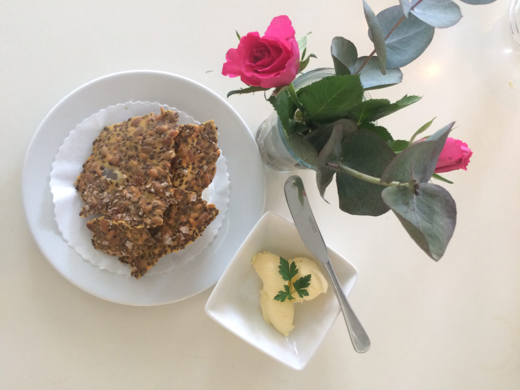 Ingredienser Ugn 150 gr, ca 45 min 2 dl majsmjöl 1 dl solroskärnor 1 dl linfrön ½ dl rapsolja 2 dl kokande vatten 1 msk mortlade fänkålsfrön flingsalt blandade frön att toppa med Gör så här Blanda allt utom flingsalt och frön som du ska toppa med. Rör samman till en gröt och klicka på […]