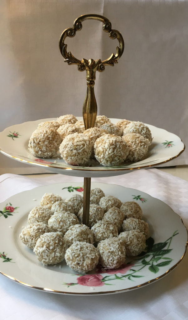 Ingredienser 150 g vit choklad 100 g smör 5 dl havregryn 0.5 dl strösocker 1 msk vaniljsocker Garnera med: kokosflingor Gör så här Smält chokladen över vattenbad. Låt svalna. Rör ihop smör, havregryn, socker och vaniljsocker till en smet. Blanda i chokladen. Rulla bollar av smeten och rulla dem i kokos. Förvara dem kallt. Går […]