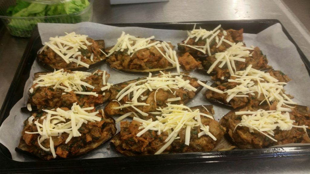 Ingredienser 2 st Aubergine 300 gr vegetarisk färs typ corn eller anamma 1 st finhackad charlottenlök 0,5 st finhackad paprika 2 st finhackade tomater salt/flingsalt, svartpeppar, olivolja eventuellt ost (alternativt veganost typ Astrid & Aporna) Gör så här Dela auberginen och gör några djupa snitt i köttsidan. Salta och häll rikligt med olivolja över snitten. […]